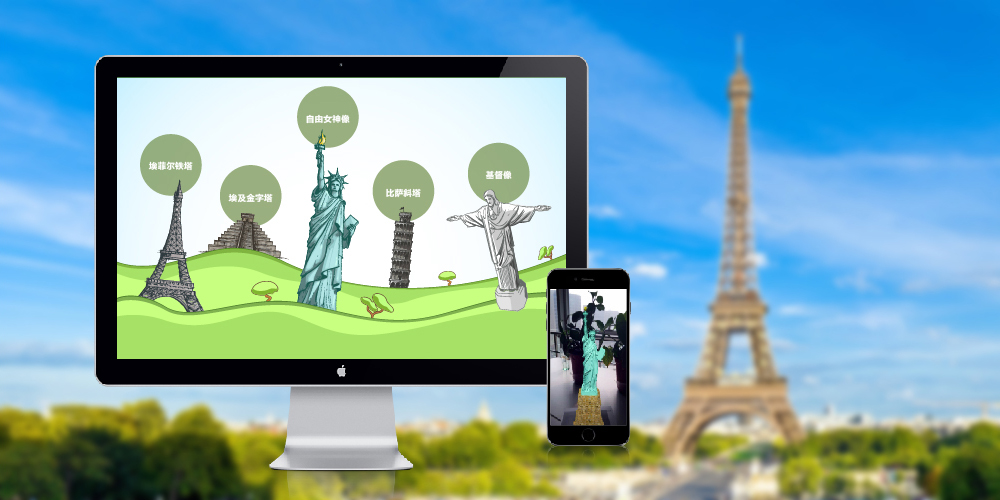 - APP特点:利用AR增强现实技术,将智能手机摄像头对准景点图片,即可出现相应的3D模型,旋转图片的同时模型跟随旋转,并附加该景点文字介绍及图片。